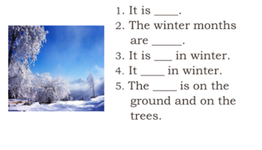 1.Перекладіть слова: морозно, сніжно, сонячно, туман, хмарно; джинси, купальник, кросівки,